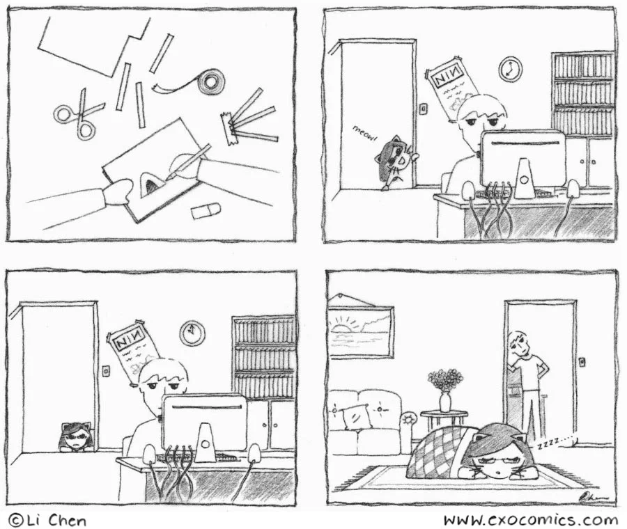 I've been reading back through your comics and now I've reached the beginning. Oh no! Out of comics! Please draw more so I can continue to procrastinate instead of doing my assignment. ;P