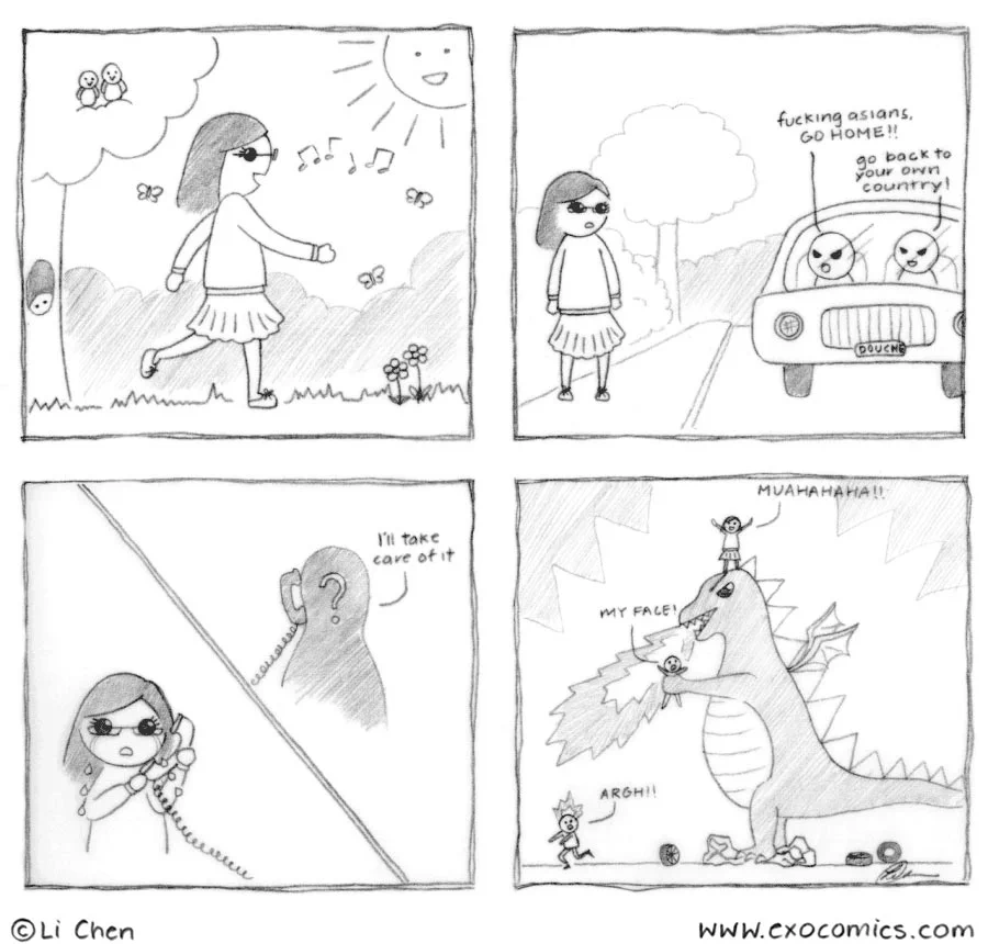 This reminds me of Albi, in Flight of the Conchord's gag. Recently experienced first hand racism too, was asked only to speak English in the UK and to f-off. But then someone overheard me telling the story to a friend and they apologized for the other person. That made me feel a bit better :)