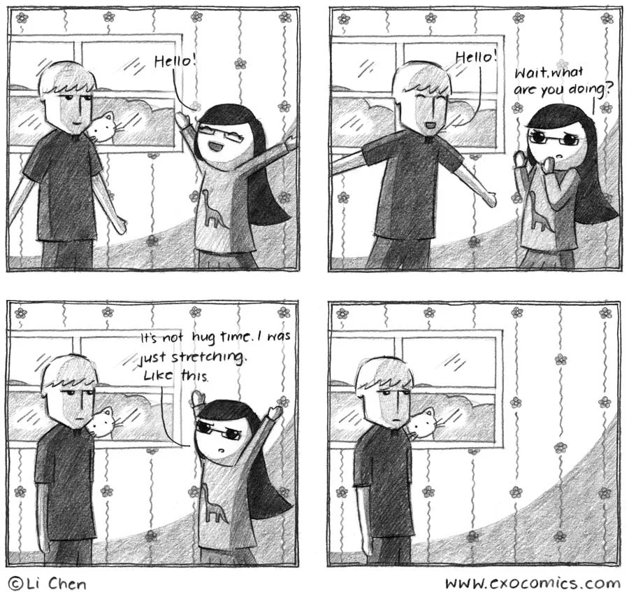 No Hugs!? No scab-eating! (Or anything else for that matter, if you’re going to be mean!)