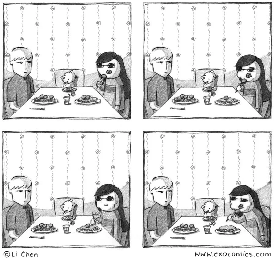 Hehe. I think Li cloned one of the meatballs. Well i just want to say that i love your comics, and that when i discovered them i read them all in an hour or so, and now your wallpaper graces my desktop.