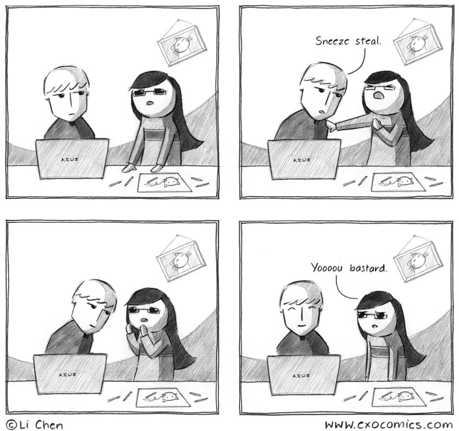 That's what you for trying to sneeze right onto Jordan's shiny laptop screen!