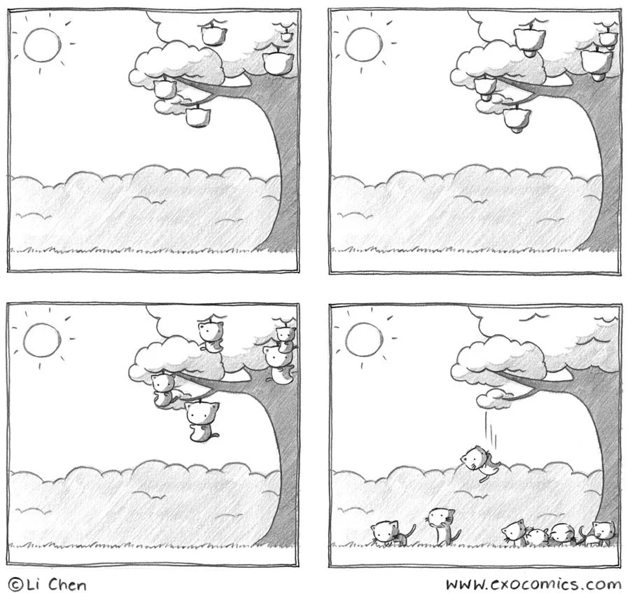 I just remembered there was a Far Side cartoon like this; a couple of dog farmers (that is, farmers who are dogs, wearing farmer hats) chitchatting about how the tree-grown kitties are "Comin' along reeeeeal good...'Course you can always lose a few to an early frost or young pups."