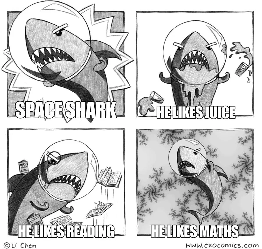 This week’s comic is a guest strip by SPACE SHARK!!! HE LIKES MATHS!