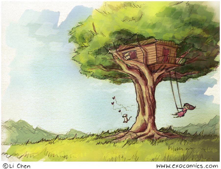 the swing is in an extraordinary and impossible position in that tree branch, yeeet I still love it :P, your comics are awesome.