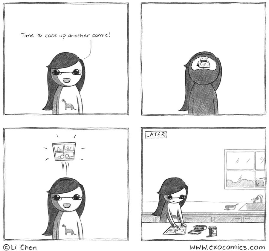 You should turn the comic that popped out of your head toaster into a real comic... and maybe have the spaces between each panel covered in butter. Yep. ;)