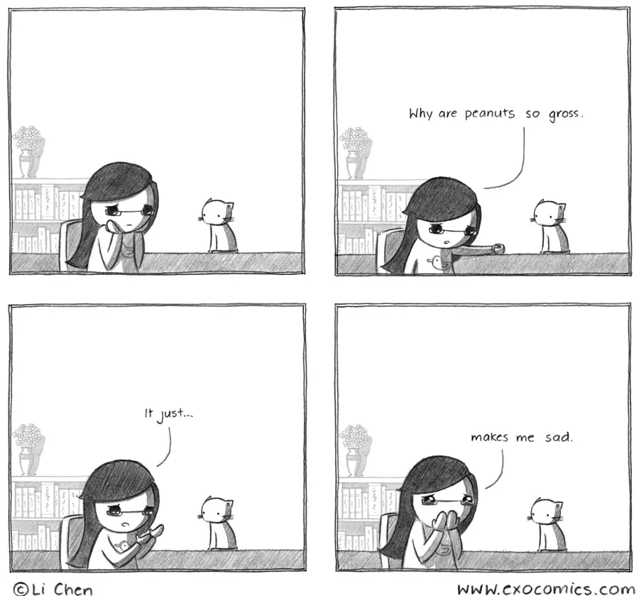 Oh, I agree. I hate peanuts! I wish I liked them because they infest most foods. Also, I just went through and read all of your comics, they're fantastic! I love em!