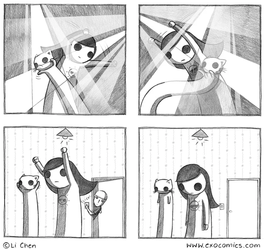 I half-expected the sun on your shirt to turn to a sad face when the lights came on.