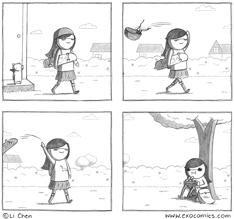 read comic backwards, and li has summoning powers and becomes a healthy skater :D