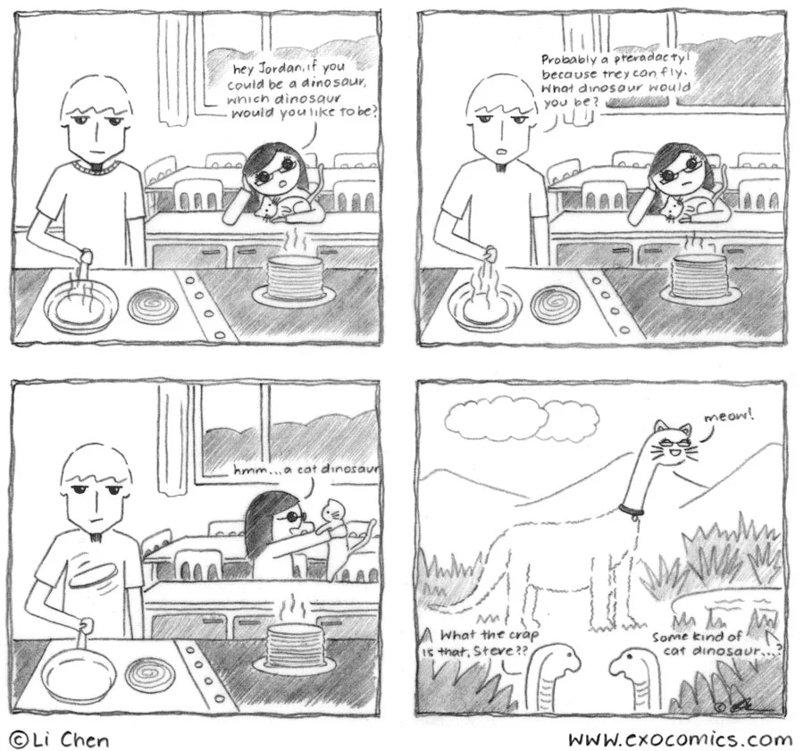 in the third panel, i thought that the pancake was a design on Jordan's shirt XD