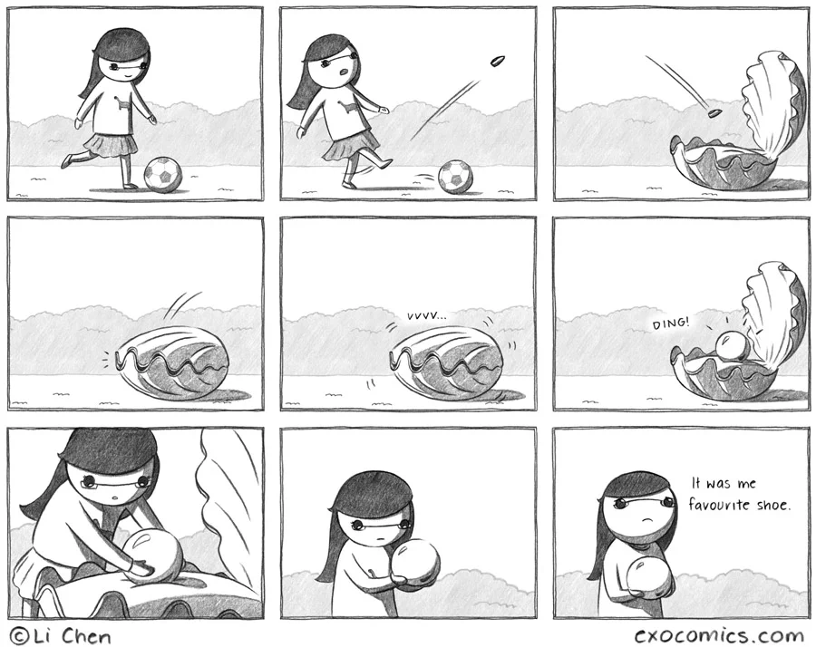 Poor Li, perhaps if you put it back in upside down it will make an un-pearl and you'll get your shoe back!