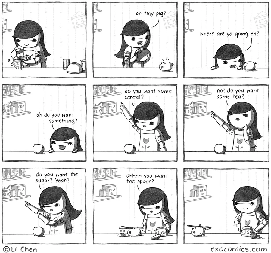 This week’s comic was inspired by this drawing I posted on twitter last week. He’s tiny and pig.