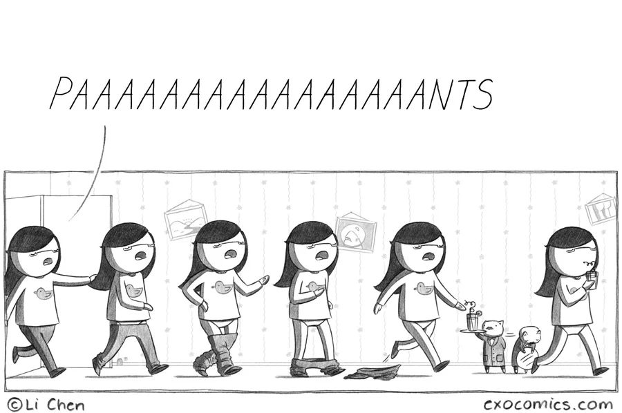 Just pants? When my partners would come home, *everything* came off. They all found clothing "too restrictive".