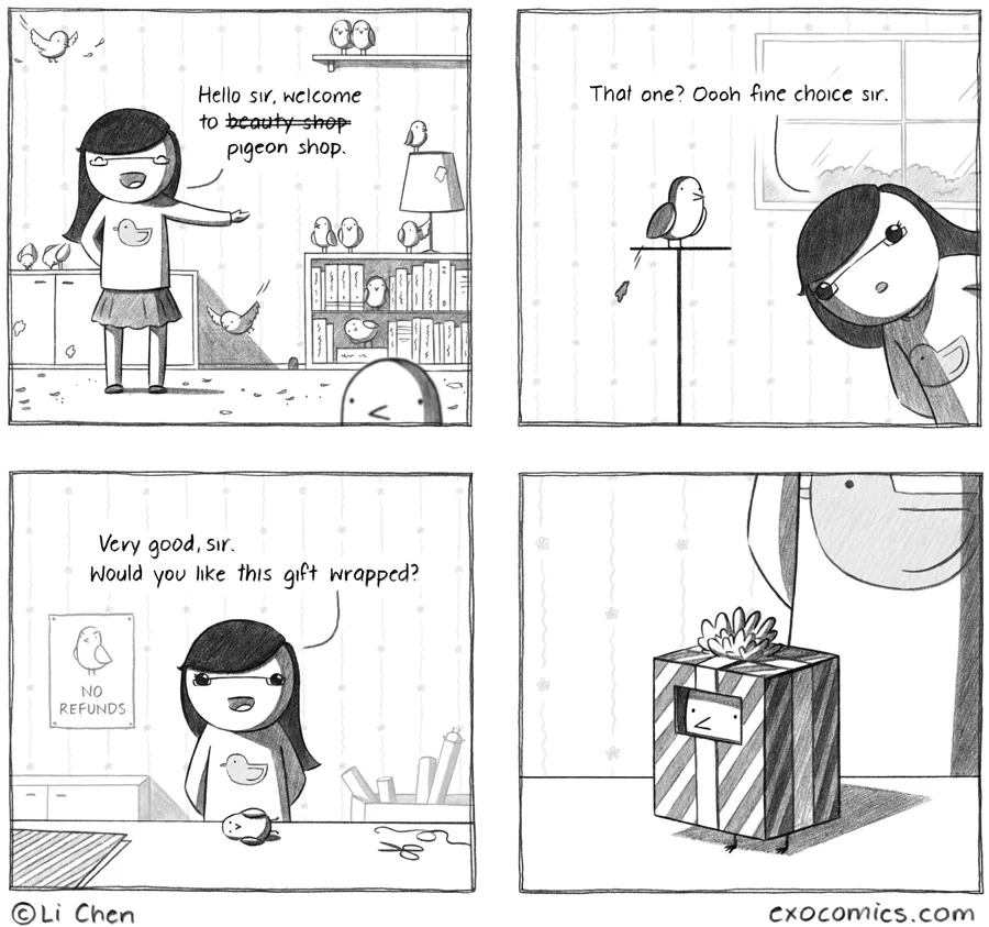 I would like a pigeon please. Do you have any with top hats?