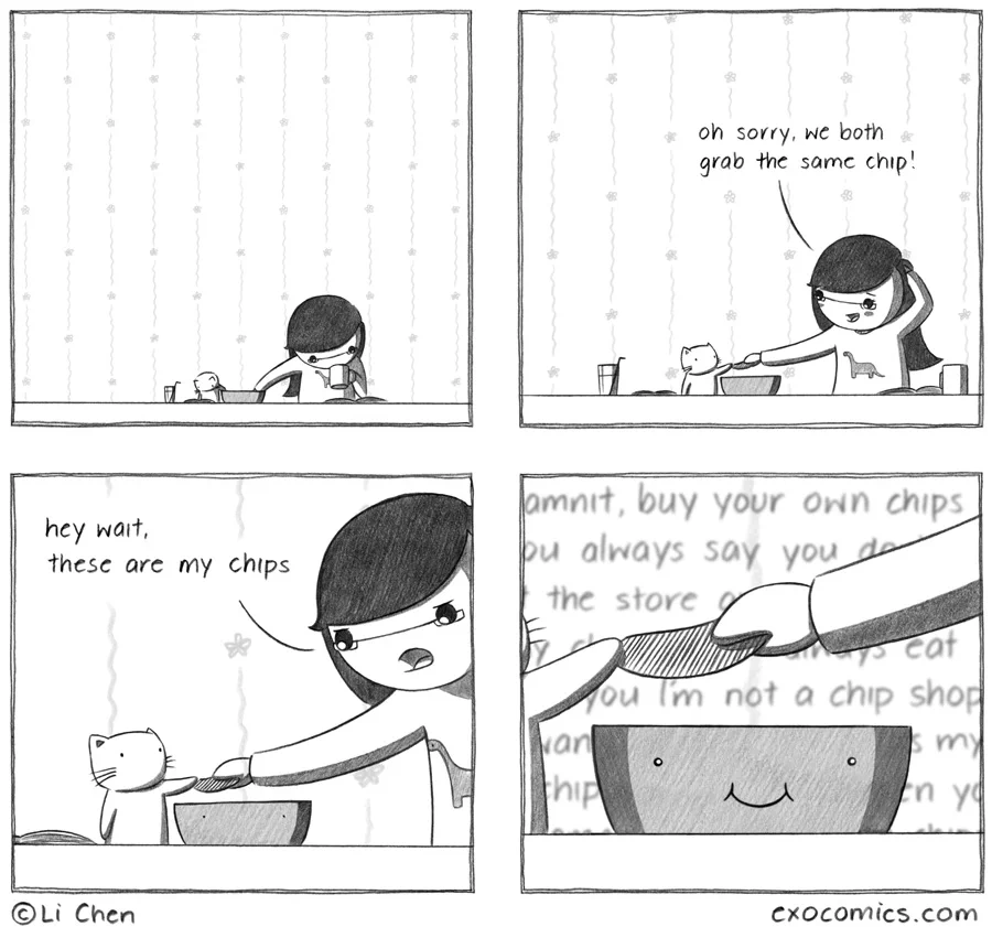 What is in that mug of yours, Li? I wish to know what you're drinking with your chips! Okithxbye!