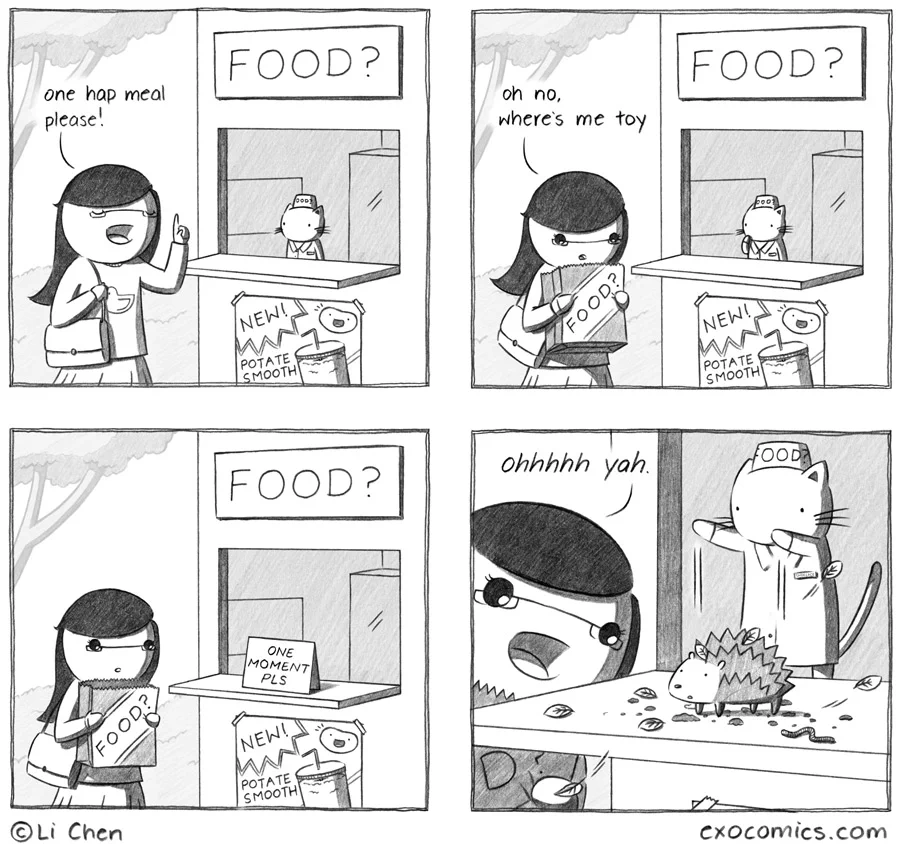 I need to go to "Food?" sometime and order the kid's meal. I've always wanted a hedgehog...