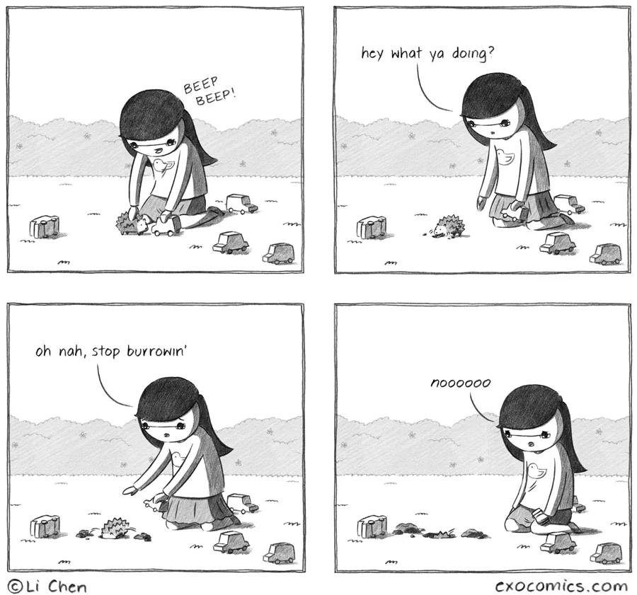 That's the first burrowing hedgehog that I've ever seen. Is he digging for a punchline?