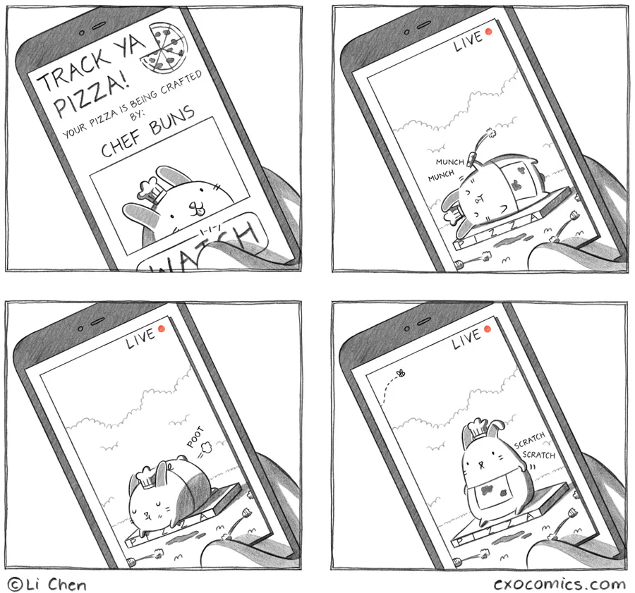 Oh, yummy: "poot" scented pizza. I'm sure Li will order another one from that place. (Just as unlikely as from the slow restaurant that prompted this strip.)