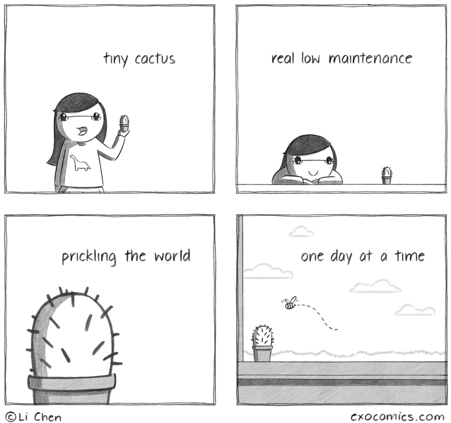 Poor Cacti.. the misunderstood stepchild of the plant world.. all he wants is a hug. And Li, happy birthday! Don't worry, I'm pretty sure A lot of your readers are older than you anyway.