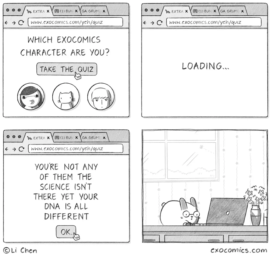 Bunny's expression in the last panel is the result of seeing this comic after clicking "ok."!