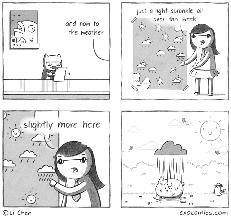 :: steps right :: dries off. :: steps left :: plays in rain.
