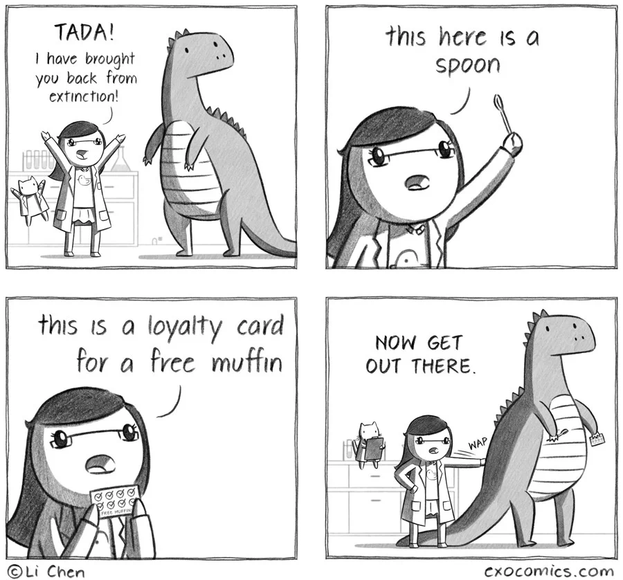 I wish that my liberal arts degree prepared me for the real world as effectively as that spoon and loyalty card prepared that dinosaur.