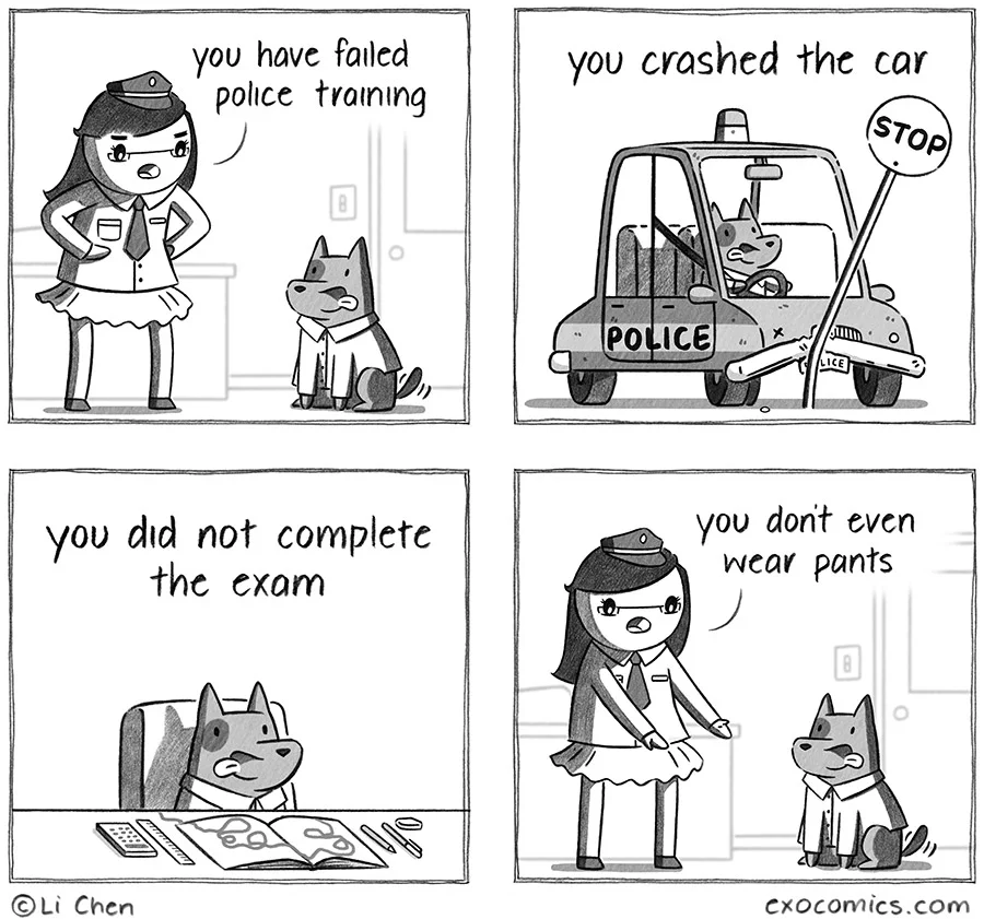 Isn't it a bit hypocritical to complain about the dog's attire when Li isn't wearing pants, either? After all, we don't even know the dog's gender!