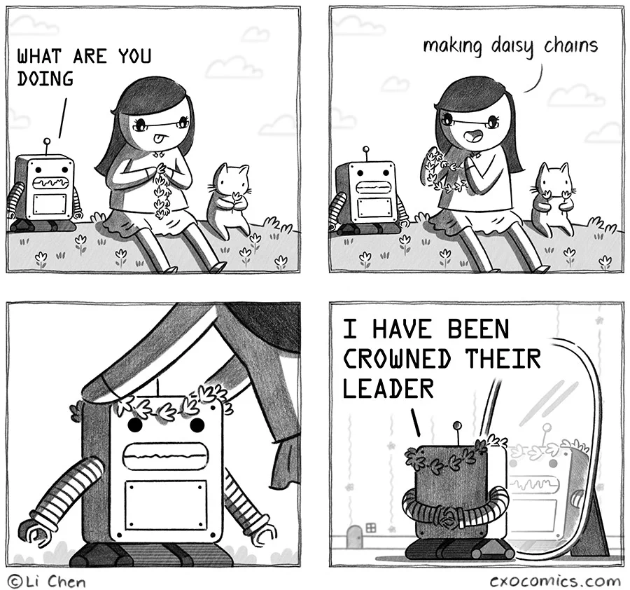 Does the lil robot friend have a name? Love seeing him in your comics.