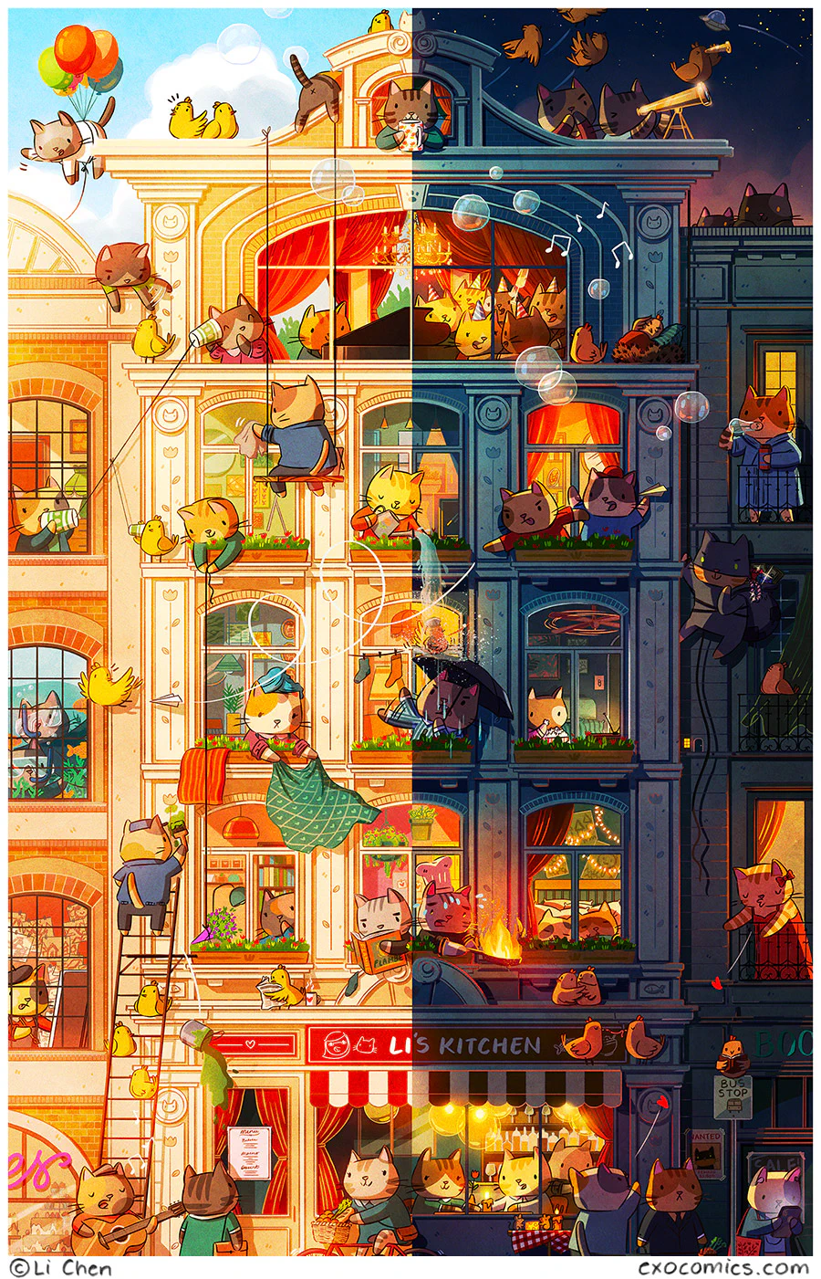 The difference between the left and right sides of the scene is, like, day and night!