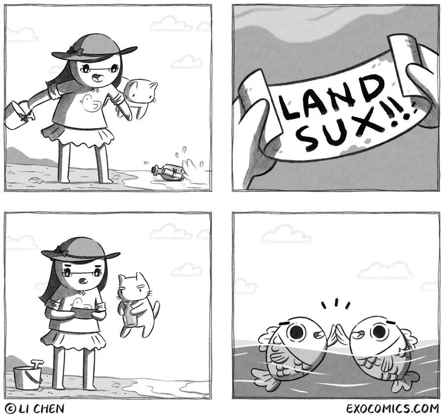 Does Shoelace float because he also hates land? I sense a conspiracy between him and the kois.