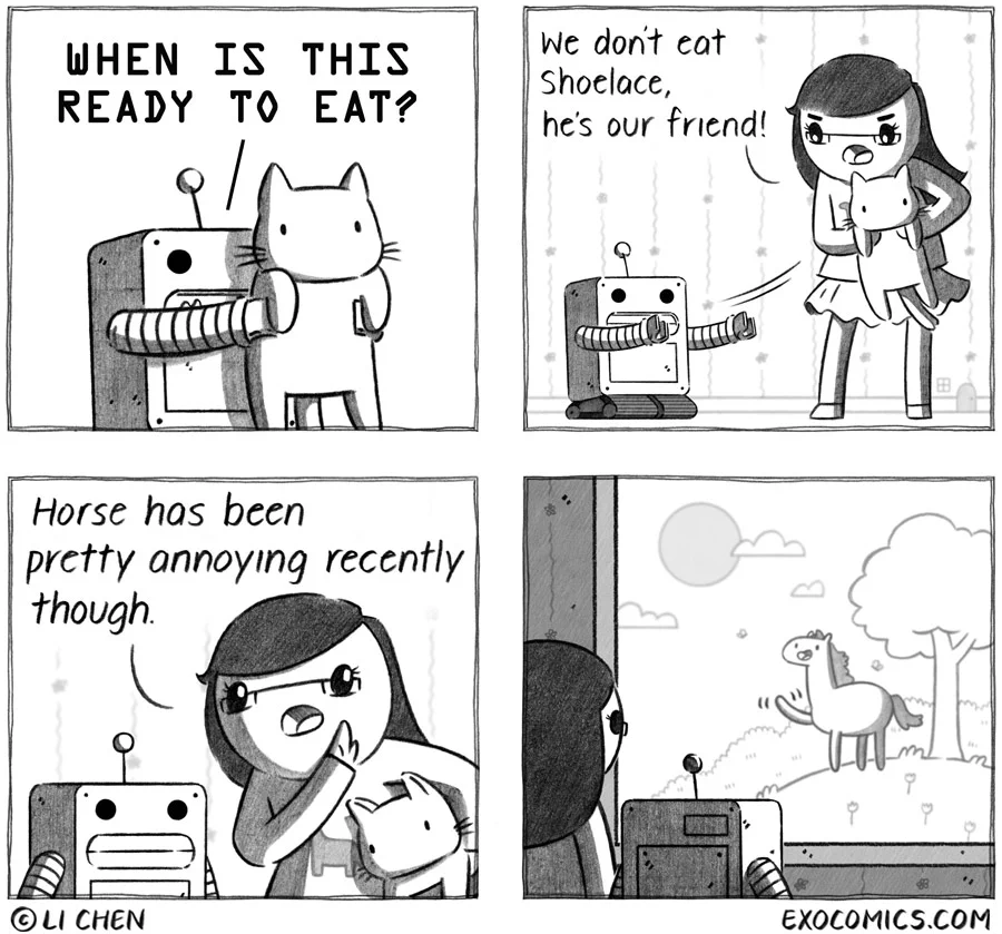 I would have thought that Robot would avoid discussing weird biological weaknesses like eating other than to tell Li how disgusting it is...