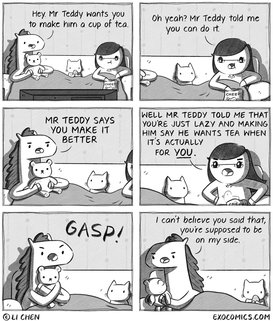 Mr Teddy hates it when they fight. Won't someone think of the... teddies?