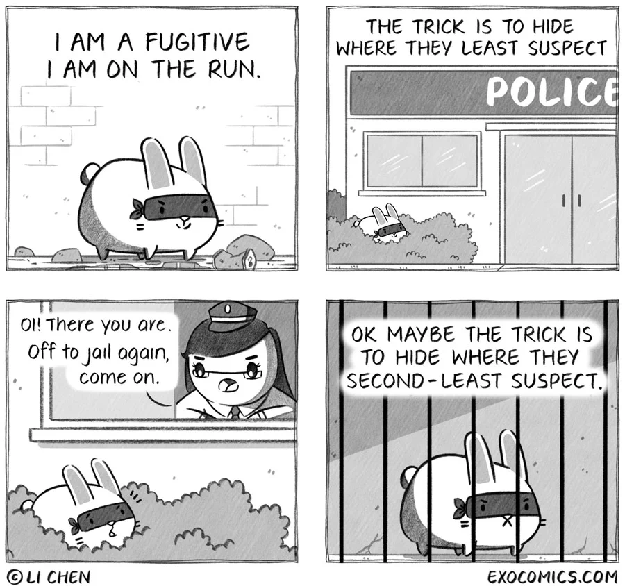 Next time maybe you should hide where they MOST suspect - they'd never suspect that!