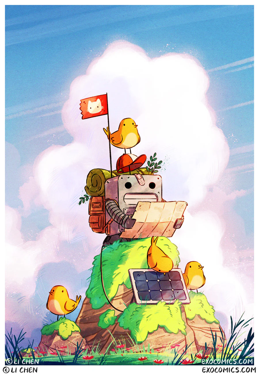 It’s one panel week and robot is going on a small hike! Also just a reminder that you can get this artwork (or anything else I’ve made) as a print! I make them here in New Zealand and I sign all of them too :)