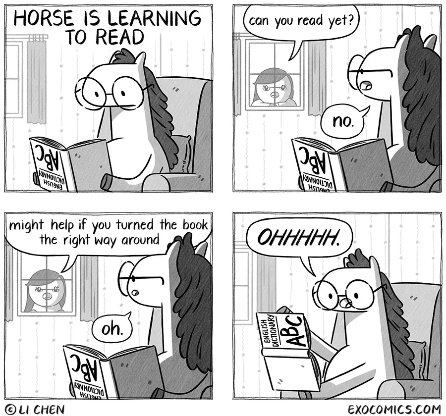 Horse is slowly getting there, 90° at a time.