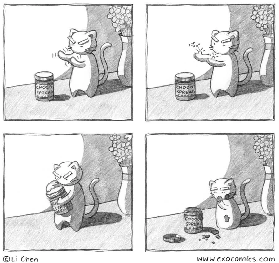 So this is why cats usually don't have thumbs -- the ones who do die from chocolate poisoning :-(