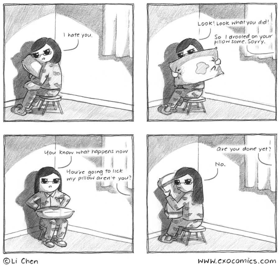 You drool on my pillow, I lick your pillow. It’s the rules.