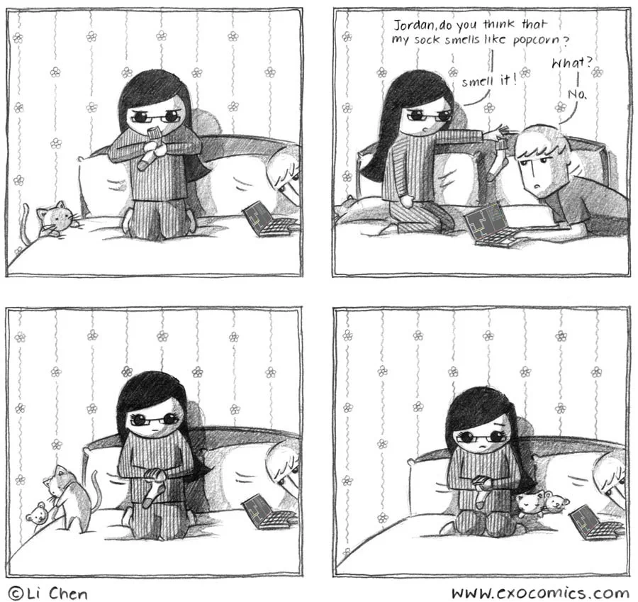 And I thought I was the only one thinking his socks smelled like popcorn… o_O