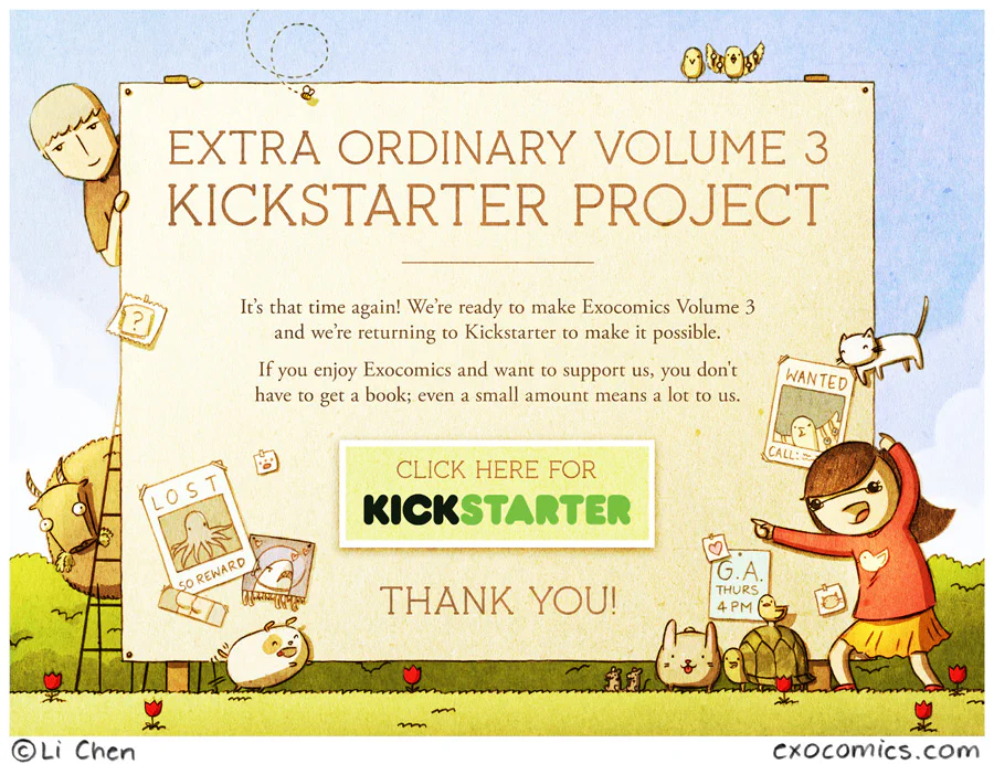 Kickstarter has become properly available in New Zealand now, so the new project is in NZ dollars (NZ$1 is about US$0.85). We want to make Volume 3 of exocomics, and a special, separate comic book for #300 - see the project page for more info.